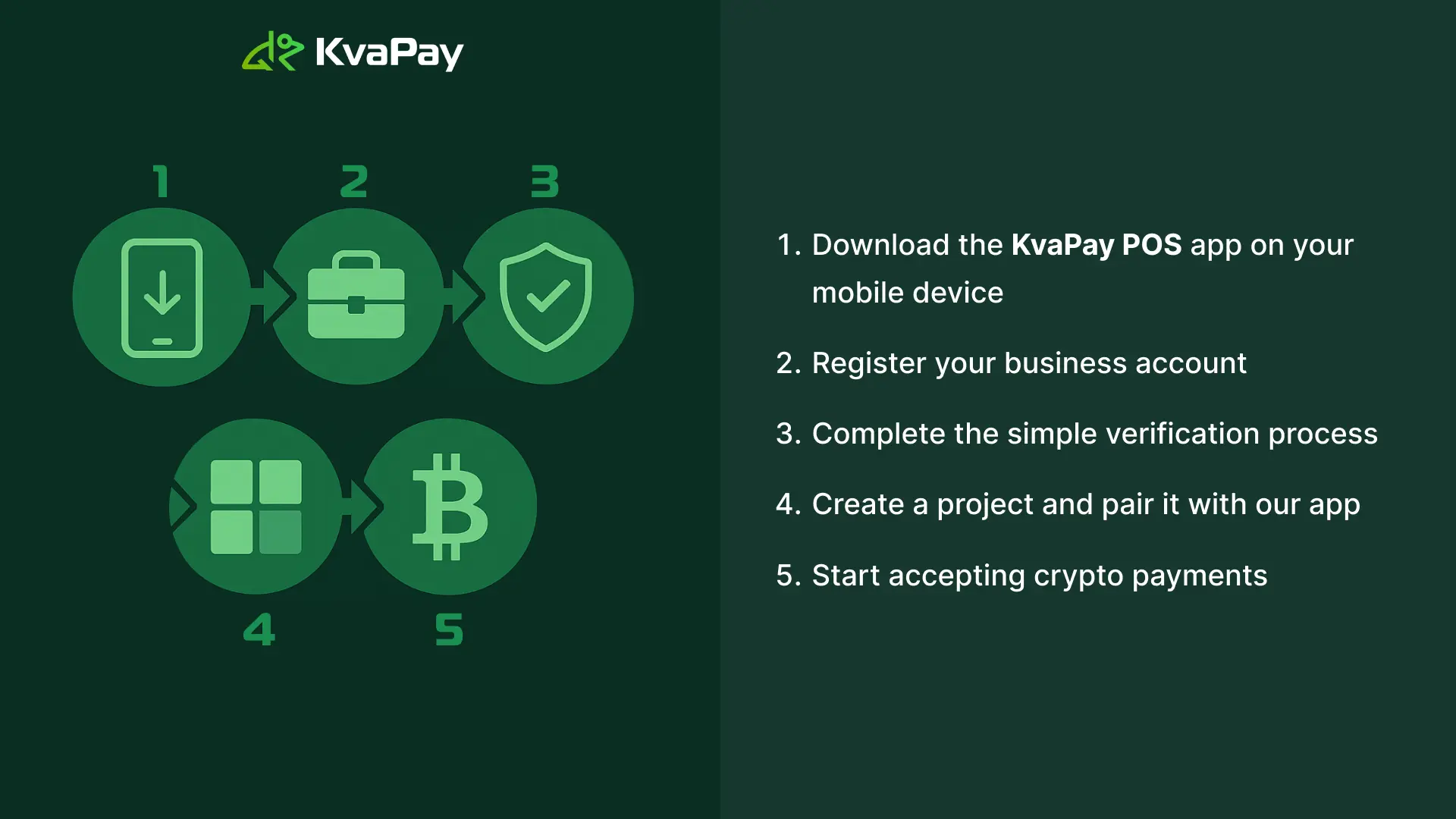 Setting up a crypto payment system is simple. KvaPay's POS terminal shows a straightforward setup process that any business owner can handle easily.