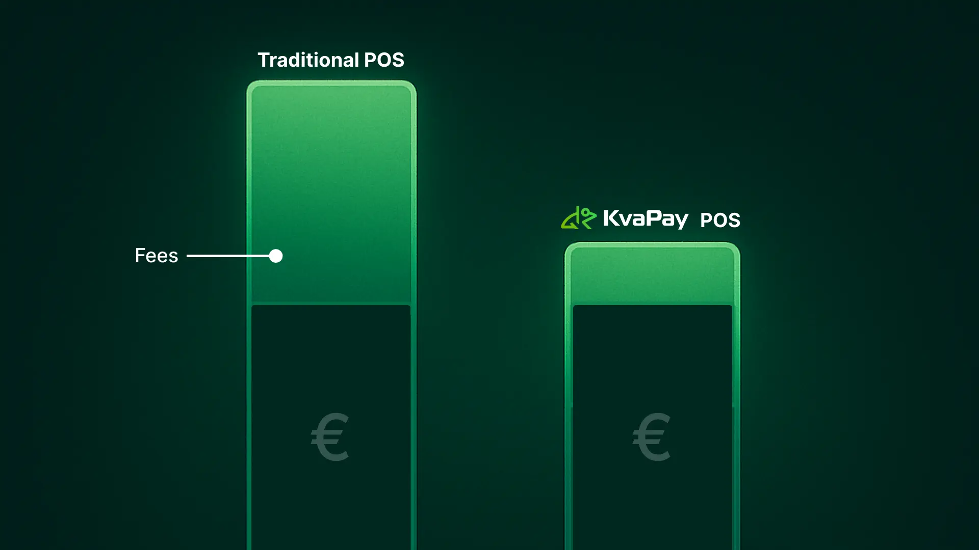 Traditional POS systems charge around 3% in transaction fees, which means you'd pay €30 for every €1000 in sales. KvaPay's fee structure offers more competitive and fair rates that help preserve profit margins. In addition, the owner of the POS terminal determines the percentage difference in the fees between the owner of the POS terminal and the customer.