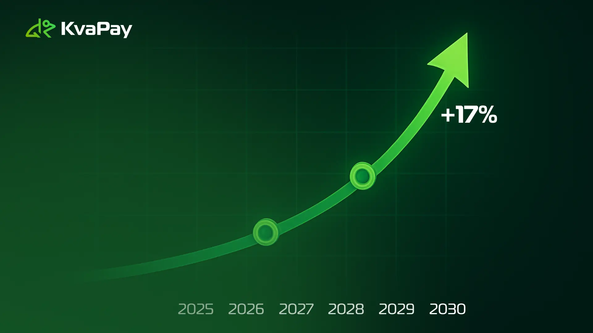 Lower transaction fees combined with increased payment convenience create an ideal environment for business growth. Crypto payment solutions are projected to grow at 17% annually until 2029. Early adopters of this technology have a strong position to capture market share!