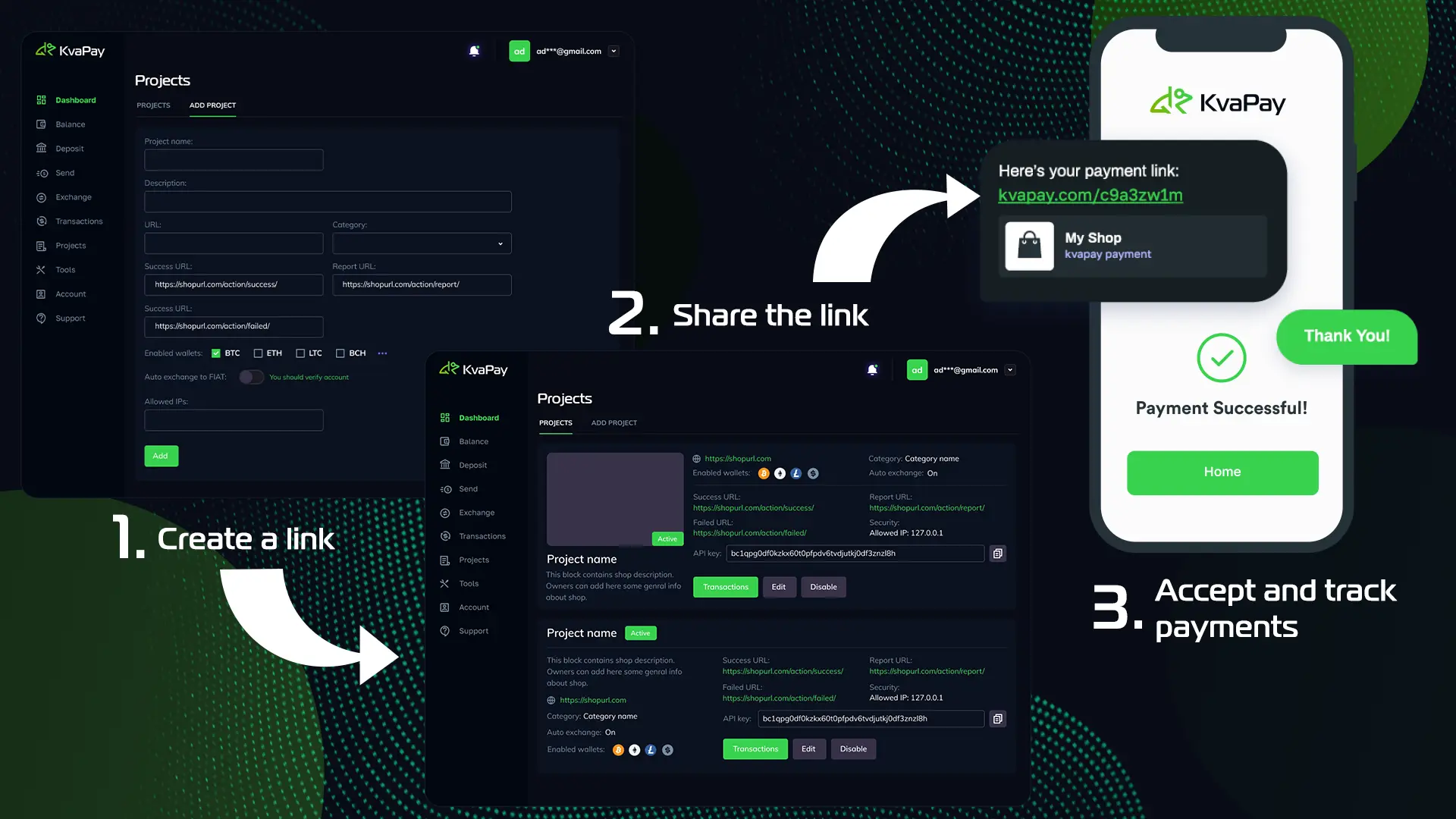 KvaPay allows creators and businesses to accept cryptocurrency through Payment Links, with automatic conversion to fiat currencies. This approach simplifies payouts, reduces operational friction, and makes modern payment infrastructure more accessible without requiring deep technical knowledge.