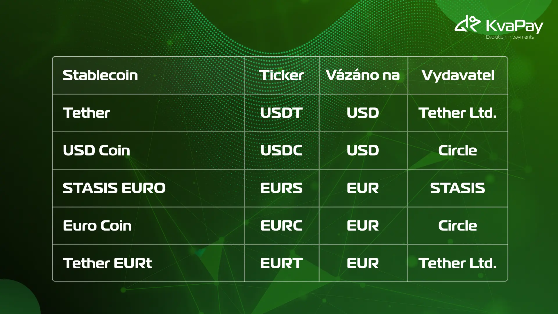 Stablecoiny slouží jako most mezi tradičními financemi a kryptoměnami, přičemž jejich hodnota je navázána na aktiva, jako je americký dolar.