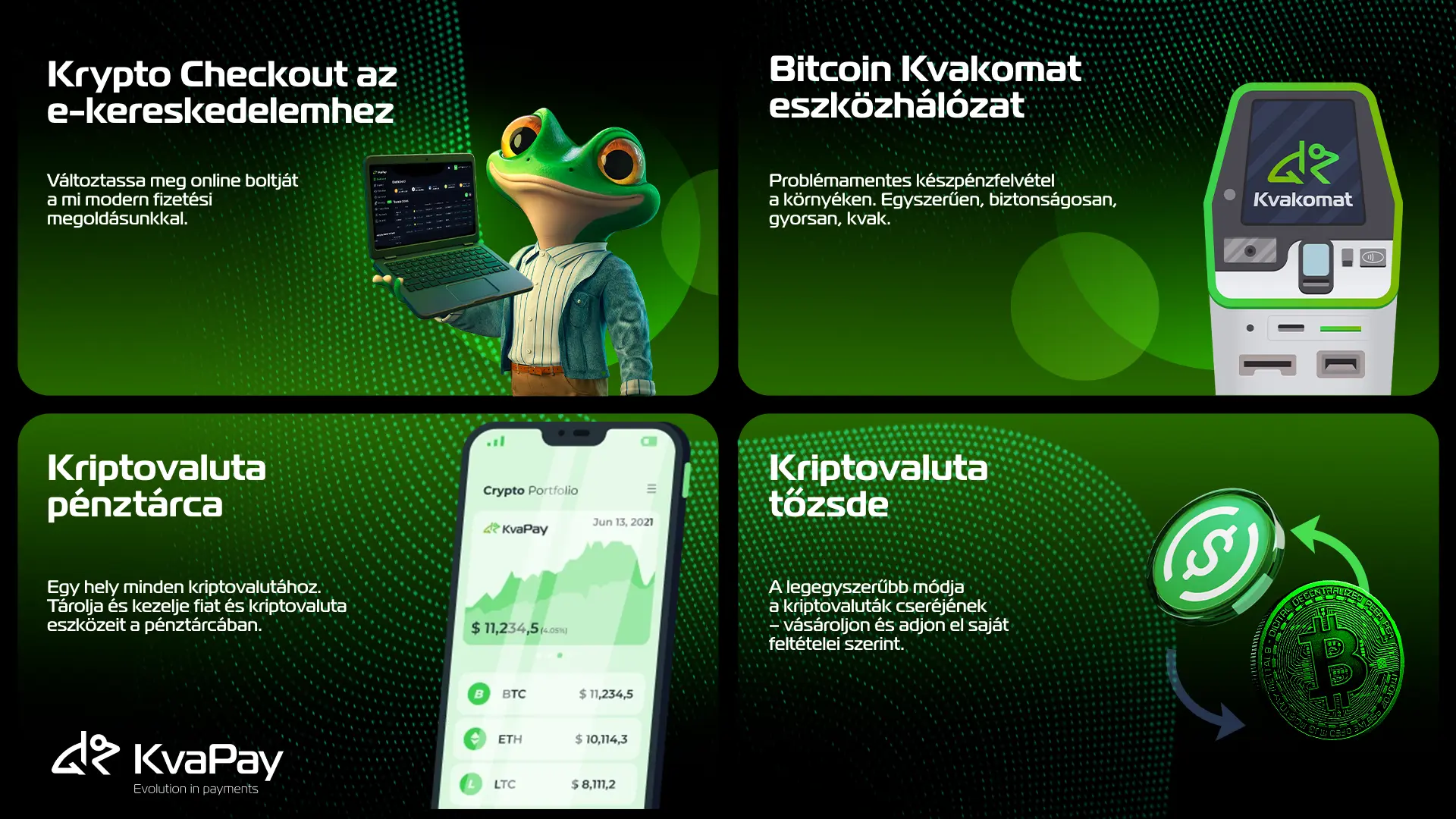 A KvaPay átfogó eszközkészletével a digitális valuták kezelése soha nem volt ilyen egyszerű – akár online, akár fizikai üzletekben vásárol. A fizetések jövője itt van, és most minden eddiginél könnyebben elérhető.