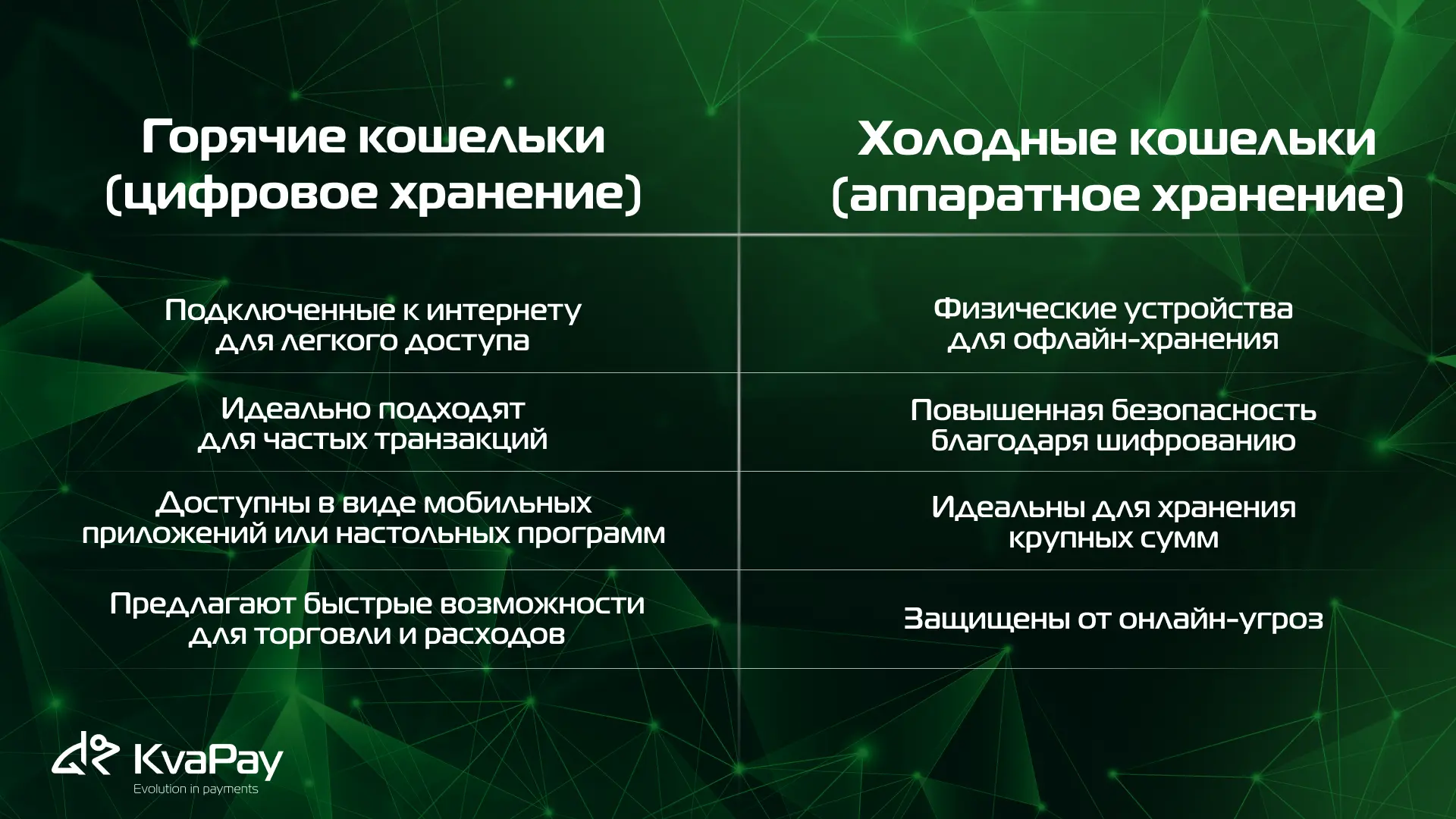 Сочетание горячих кошельков для регулярных расходов и холодного хранения для более крупных сумм обеспечивает оптимальную безопасность при сохранении удобства. Комплексное решение нашей компании, включающее криптокошелек, POS-терминал и платежные ссылки, делает транзакции с цифровой валютой такими же простыми, как и традиционные платежи.