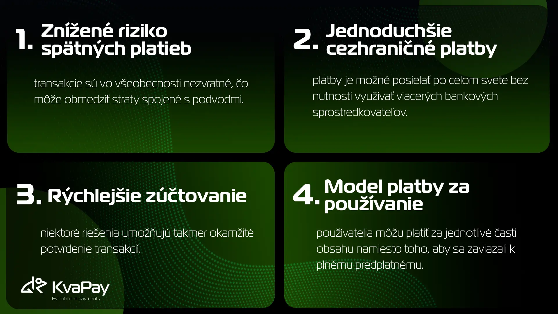 Napriek týmto pokrokom sa mnohé podniky stále potýkajú so zložitosťou integrácie platieb v kryptomenách, od obáv o volatilitu až po účtovníctvo a používateľskú skúsenosť. Práve v tejto oblasti sa platformy ako KvaPay snažia preklenúť túto priepasť.